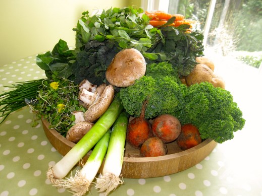 beets, carrots, chives, collard greens, kale, kale raab, leeks, micro greens, mushrooms, pea shoots, potatoes