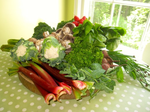 beets, cauliflower, celery, chives, kale, mushrooms, parsley, pea shoots, radishes, rhubarb, spinach