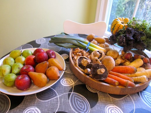 Maybe I should picture my fruit more often…I got lots of incredulous “You get beautiful fruit like that too?!?” Well, yes I do. My winter CSA, Hood River Organic, is something special indeed. They are an organic farm nestled in the gorgeous Hood River Valley, growing their own produce, as well as partnering with nearby farmers to bring the best that the region has to offer to consumers through their CSA program. I guess I just get used to the fact that during these supposed dark winter months, my table is piled high with local bounty, veggies and fruit, each week. Not to mention the optional items I can include in my box any time – bakery bread, apple & pear butters, cheese, eggs, honey, the list goes on. Fresh, yummy goods provided by their nearby farm partners and friends. This week’s menu has a smattering of everything, but pays special tribute to the five bags of quinoa I uncovered during a much-needed new year’s pantry clean-out. I had the right idea – it is the perfect whole grain! Quick-cooking, a complete protein, and taste great too!