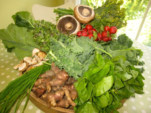 braising mix, chives, collard greens, kale raab, kale, micro greens, mushrooms, radishes, spinach, sunchokes