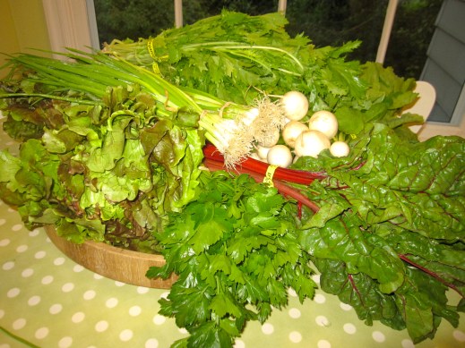 chard, gourmet greens, lettuce, mizuna, parsley, turnips, green onions