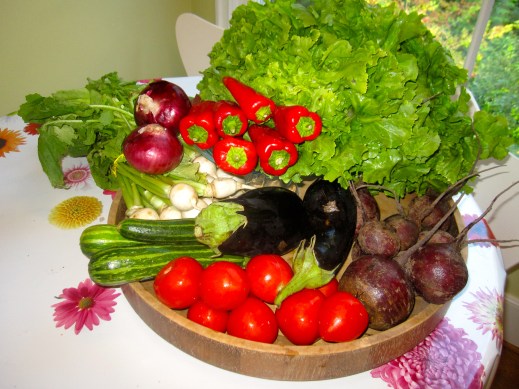 beets, escarole, eggplant, gourmet greens, turnips, onions, sweet peppers, summer squash, tomatoes