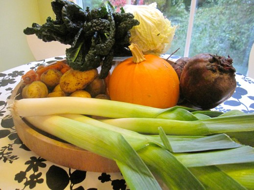 beets, carrots, gourmet greens, kale, leeks, cabbage, potatoes, winter squash