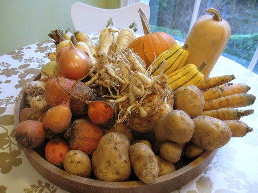 beets, carrots, celeriac, garlic, onions, parsnips, potatoes, winter squash