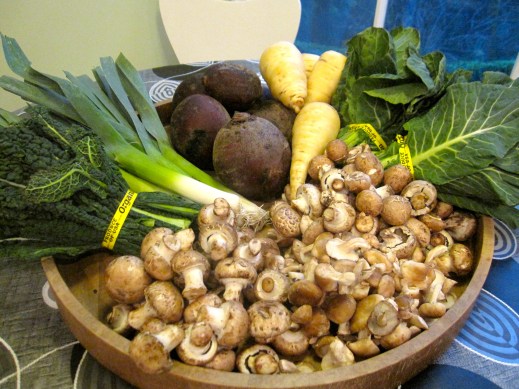 beets, collard greens, kale, leeks, mushrooms, parsnips