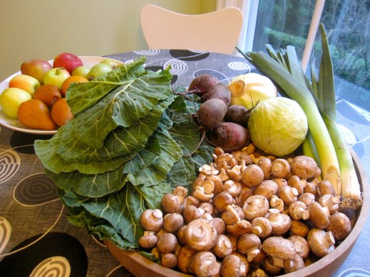 beets, cabbage, collard greens, leeks, mushrooms