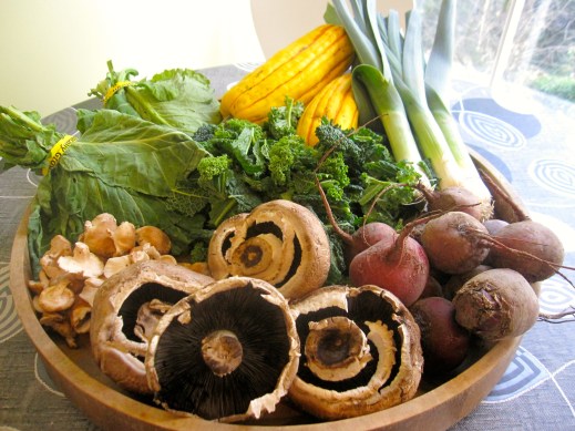 beets, collard greens, kale, leeks, mushrooms, winter squash