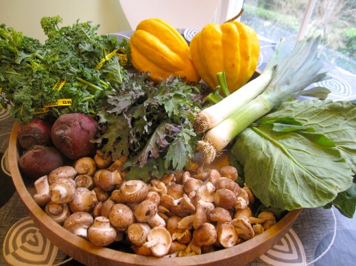 beets, collard greens, kale raab, kale, leeks, mushrooms, winter squash
