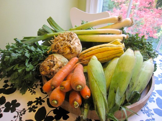 carrots, celeriac, corn, gourmet greens, kale, parsley, winter squash