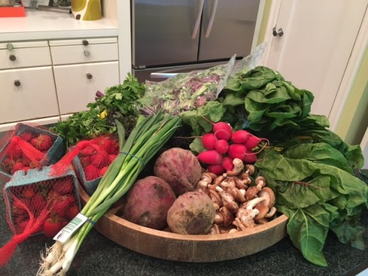 beets, cilantro, green onions, parsley, radishes, spinach, rainbow chard, shiitake mushrooms, spring salad greens, strawberries